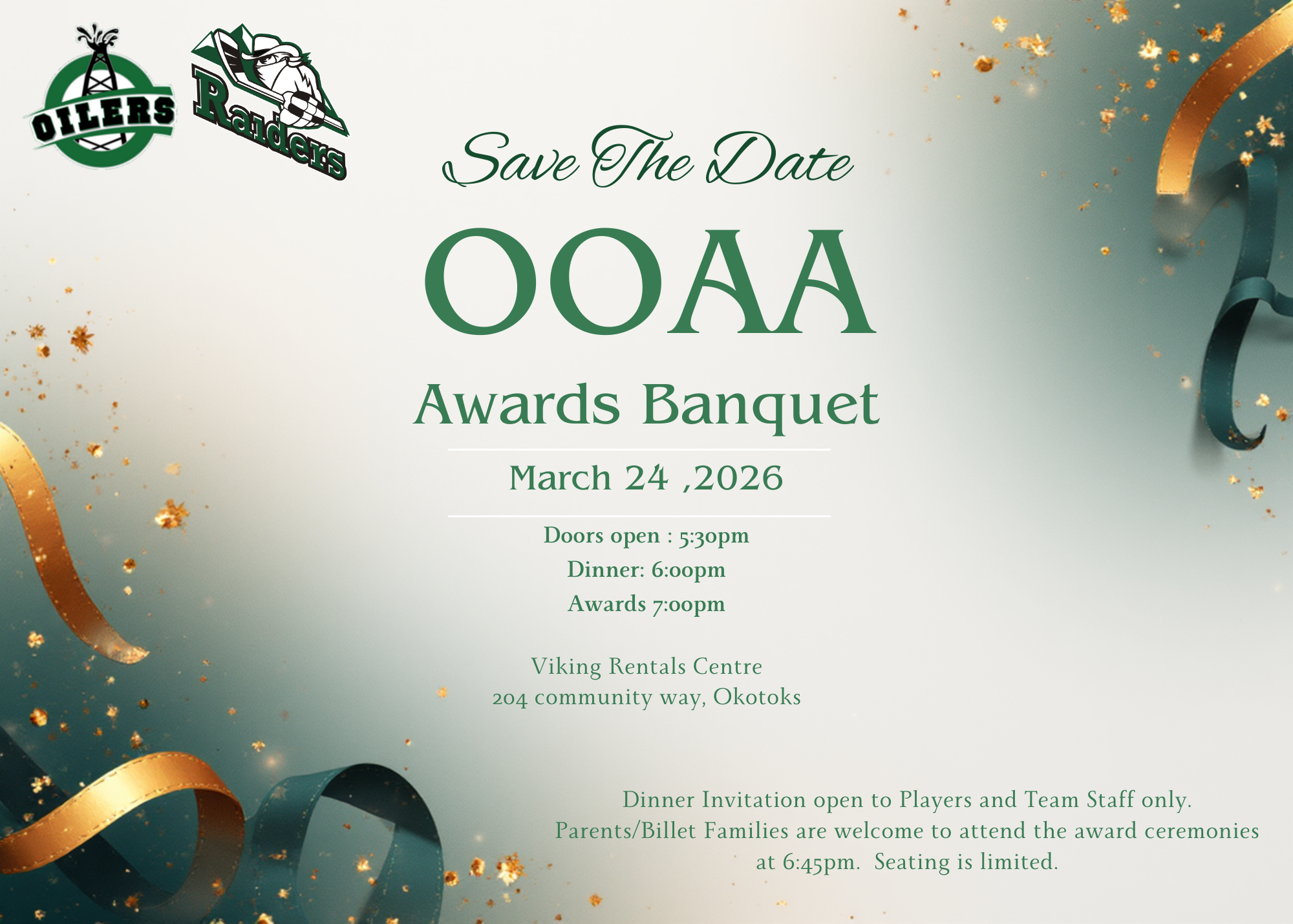 Save the date! The Annual OOAA Awards Banquet will be held on March 24, 2026 at the Viking Rental Centre.