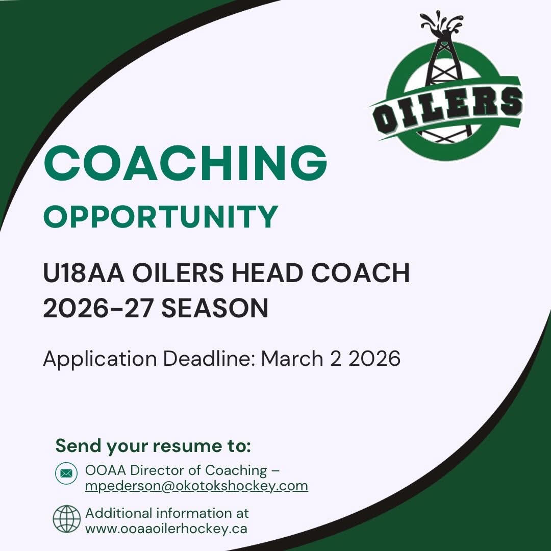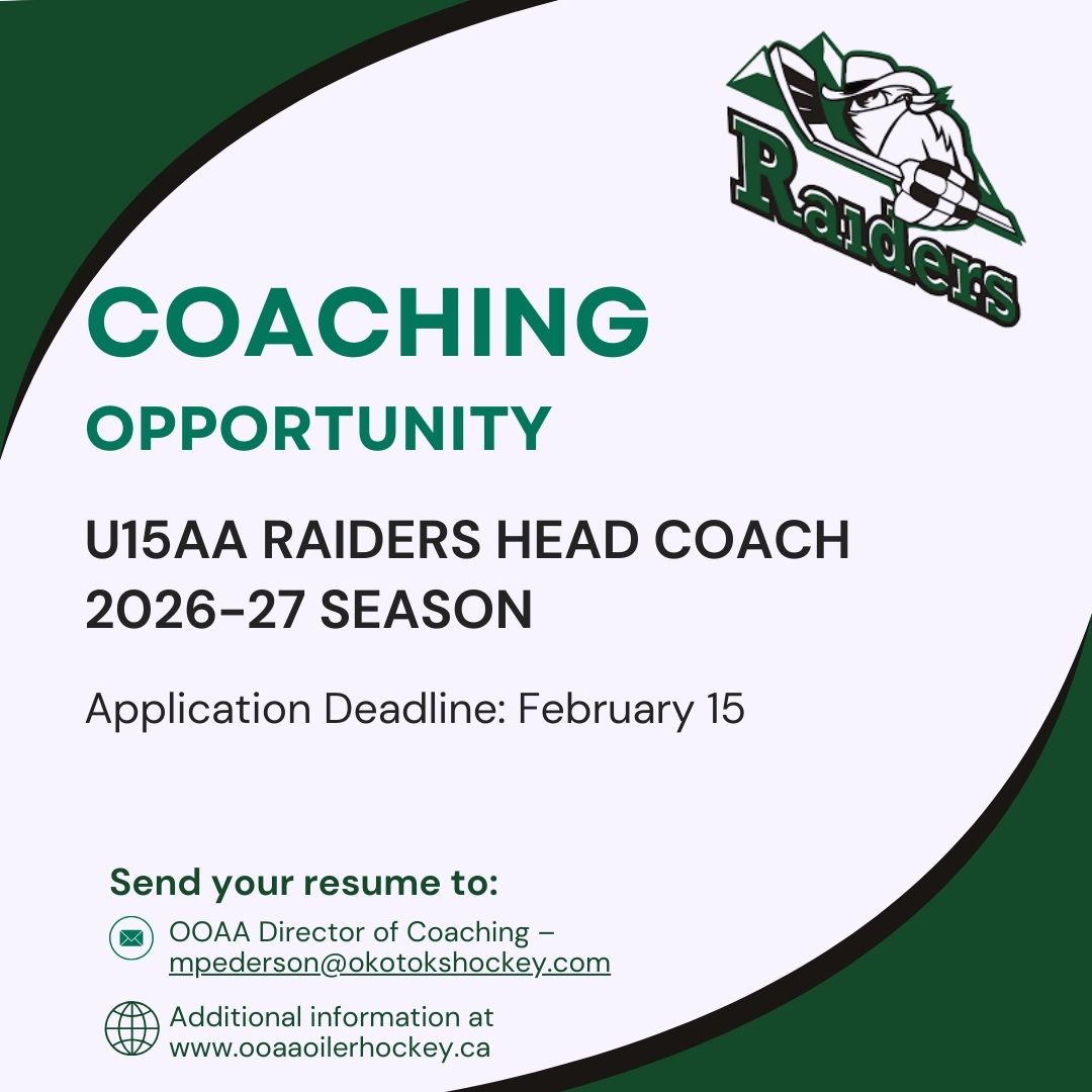 The Okotoks Oilers Athletic Association (OOAA) is now accepting applications for the position of the Head Coach for the U15 AA Rocky Mountain Raiders team for the 2026/2026 Season in the AFHL.