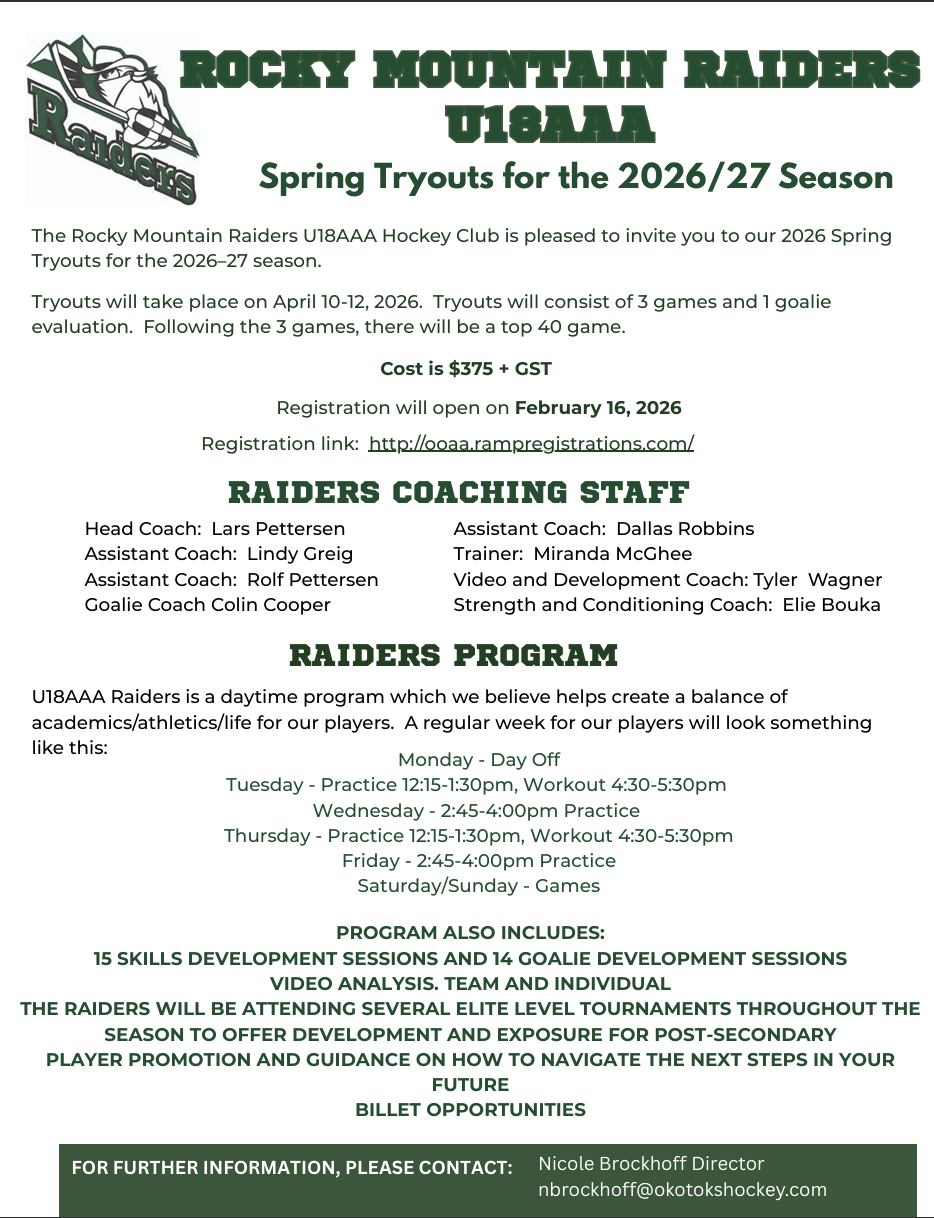 | U18AAA Raiders Spring Tryout Schedule | ||||